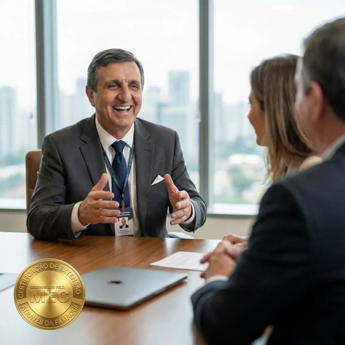 Além do certificado, nós orientamos você na obtenção da sua Credencial Profissional em entidades associativas existentes, que facilita sua identificação perante clientes e órgãos públicos durante o exercício da função. Ela é um símbolo importante da sua autoridade profissional.